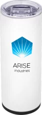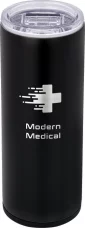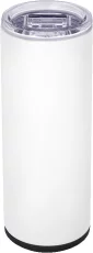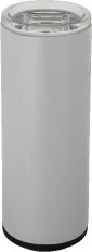 18-8 Stainless Steel dual wall construction, Copper-lined, vacuum-insulated deep draw liner maintains optimal 7X drinking temperatures, Lead-free vacuum seal, Dual function tumbler and 12 oz slim can cooler, Features thumb-slide, screw-on lid to prevent spills and maintain drink temperatures longer, Twist top rubberized ring designed to hold 12 oz slim cans, Both lids attach to the body of the unit at the same time, Sweat-free design, Powder-coated finish, 1-year limited warranty, Patented. 7.625" H x 2.875" W x 2.875" D