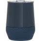 12 oz double wall 18/8 stainless steel thermal tumbler with copper vacuum insulation, push-on lid, matching swivel closure, and removable silicone base. Individual gift box. Hand wash recommended. Do not microwave. Complies with FDA, Prop 65. 4.75" H x 3.625" W