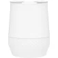 12 oz double wall 18/8 stainless steel thermal tumbler with copper vacuum insulation, push-on lid, matching swivel closure, and removable silicone base. Individual gift box. Hand wash recommended. Do not microwave. Complies with FDA, Prop 65. 4.75" H x 3.625" W