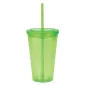 This 16 Oz. (470 Ml) BPA-free double wall acrylic tumbler has a matching color rigid straw included. It's designed for use with cold and room-temperature beverages only. Not microwave safe. Fits most auto cup holders. Production times may vary due to imprint method. Complies with Prop 65. 6.25" H x 4" Diameter