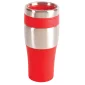 This 16 Oz. insulated tumbler has a stainless steel exterior and a BPA-free plastic interior. Features matching color PVC grip and a thumb slide plastic lid. Fits most automobile cup holders. Not microwave or dishwasher safe. Caution: item may leak if tipped or held upside-down. Reduced imprint area for multi-color and Spot Color Transfer orders: 2.5"w x 1.5"h (side), and 2.25"w x 1.5"h (opposite side). Complies with Prop 65. 7" H x 3.25" Diameter
