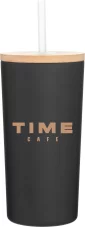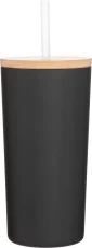 16.9 oz double wall 18/8 stainless steel tumbler with copper vacuum insulation, push-on bamboo lid, soft straw, and powder coated finish. Individual gift box. Hand wash recommended. Do not microwave. Complies with FDA, Prop 65. 6.6" H x 3.3" W