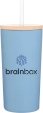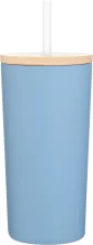 16.9 oz double wall 18/8 stainless steel tumbler with copper vacuum insulation, push-on bamboo lid, soft straw, and powder coated finish. Individual gift box. Hand wash recommended. Do not microwave. Complies with FDA, Prop 65. 6.6" H x 3.3" W