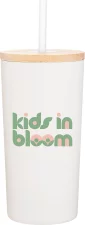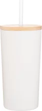 16.9 oz double wall 18/8 stainless steel tumbler with copper vacuum insulation, push-on bamboo lid, soft straw, and powder coated finish. Individual gift box. Hand wash recommended. Do not microwave. Complies with FDA, Prop 65. 6.6" H x 3.3" W