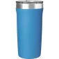 18 oz double wall 18/8 stainless steel thermal tumbler with vacuum insulation, brushed stainless steel rim, clear push-on acrylic lid with sliding closure, and powder coated finish. Individual gift box. Hand wash recommended. Do not microwave. Complies with FDA, Prop 65. 7.25" H x 3.5" W