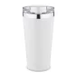 20 Oz. Heavy duty double wall stainless steel vacuum insulated tumbler. Features a clear AS screw-on lid with color matched PP flip top spout cover. Powder coat finish with copper lining and brushed silver accents; double wall 201/304 stainless steel. Fits in standard cup holders. Not microwave safe; hand wash only. 7 3/4" H x 3 7/8" Diameter