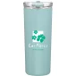 20.9 oz double wall 18/8 stainless steel thermal tumbler with copper vacuum insulation, push-on lid, matching swivel, and matte pearlized finish. Hand wash recommended. Do not microwave. Complies with FDA, Prop 65. 8.375" H x 3.25" Diameter x 3.5" W