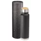This speckled bottle features rugged, double-wall stainless steel construction and comes with an attractive cylindrical gift box. Its innovative copper vacuum insulation is engineered to keep beverages hot for 12 hours or cold for 48 hours. The Thor Speckled Bottle with Cylindrical Box 22 oz. includes a sturdy hand loop for easy carrying, plus a spill-resistant screw-on lid with bamboo top.