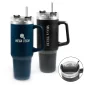 18/8 double wall stainless steel, Powder coded, Large capacity 40 oz (1.1 L), Keep drinks hot and cold for long time, Comes with a set of stainless steel straw and a cleaning brush, Great for summer outdoor or travel use, Black paper box, One engraved logo included