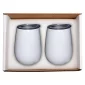 Gift set includes 2 pieces of the stainless steel stemless vacuum wine tumblers in a gift box. The stemless vacuum wine tumbler is a 10 Oz. (295 Ml) double-wall vacuum insulated stemless wine tumbler with a clear AS plastic lid. Vacuum insulation helps keep your hot beverages warm longer and cold beverages cool longer than bottles and tumblers without vacuum insulation. Designed for use with both hot and cold liquids. Hand-wash only. Do not microwave. Complies with Prop 65. 4.5" W x 2.125" Diameter