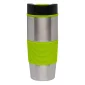 This stainless steel tumbler features a colorful ergonomic silicone grip on the exterior and a matching plastic liner on the interior. The black screw-on lid has a matching colored spill-resistant, slide-top sipping area. Customize with a 1-color silkscreen imprint. CA Prop 65 compliant. BPA free. * Must be ordered in full carton quantities - multiples of 25. Complies with Prop 65. 7.91" H x 3.24" Diameter