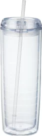Some like it hot & some like it cold with this lid you can have both. Double-wall acrylic body with push on thumb-slide lid. For hot and cold beverages. Polypropylene straw with stopper for cold beverages. BPA free. 24oz. 3.00" D x 3.00" W x 9.25" H