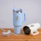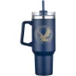 Take Your Favorite Drink With You Wherever You Go With the 40 oz. Saratoga™ Satisfy Travel Mug! Powder coated finish travel mug with ergonomic comfort handle, polypropylene straw and screw on lid. Made of 18/8 Stainless Steel with vacuum sealed copper coating. It keep drinks cold for up to 11 hours, hot for up to 7 hours. 40 oz. capacity offers maximum hydration with fewer refills