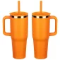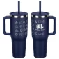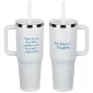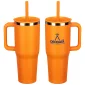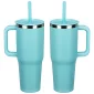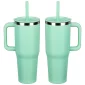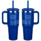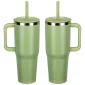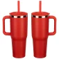The SENSO® Summit 40 oz Vacuum Insulated Stainless Steel Travel Mug is crafted from 18/8 stainless steel, it features a nice powder-coated matte finish, color-matched plastic handle and straw, a press-in straw lid to prevent spills and a copper-lined and double-wall insulation for temperature retention. This travel mug keeps your drinks hot for up to 6 hours or cold for up to 16 hours and it is compatible with car and truck cup holders. The SENSO® Summit is also BPA-free and FDA-certified. Complies with FDA, Prop 65. 10.125" H x 3.875" Diameter
