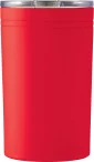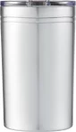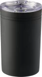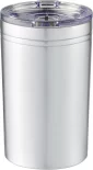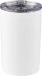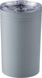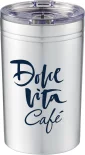 Double-wall construction, vacuum insulated. Clear, press-on lid with slide closure. It can conveniently keep drinks hot for 5 hours and cold for 15 hours. Works as a tumbler or drink insulator. Hand wash only. Follow any included care guidelines. 3.35" D x 3.35" W x 5.31" H