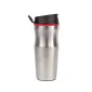 Double wall stainless steel tumbler- Non-spill sliding spout closure- Padded base for maximum stability- Curved lid for ease of use- Ideal for hot and cold beverages. 3.0" W x 8.0" H