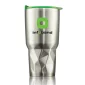 Double wall stainless steel vacuum tumbler- Seamless seal, push on translucent color accent acrylic lid- Curved lid with easy-slide closure- Fashion-forward geometric indented design- Vacuum seal insulates and keeps your drinks hot or cold. 4.0" W x 8.0" H