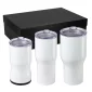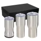 This high quality black gift box features three pieces of the Urban Peak® Drinkware Collection: 3-in-1 Insulator, 20 Oz. Vacuum Tumbler, 30 Oz. Vacuum Tumbler. The 18-8 Stainless Steel, double wall copper-lined vacuum insulated drinkware. Die cut black foam for a professional presentation. Patented. 1-year limited warranty. 4.625" D x 10.75" W x 15.25" H
