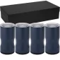 This high-quality black gift box features four pieces of the 12 oz Urban Peak® 3-in-1 Trail Insulator (SL233PR). 18-8 Stainless Steel, double wall copper-lined vacuum insulated drinkware with powder-coated finish. Die cut black foam for a professional presentation. Choose from four available drinkware colors. 1-year limited warranty. SL233PR 3-in-1 Patented. 3.938" D x 8.625" W x 17.125" H