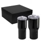 This high quality black gift box features two pieces from the Urban Peak® Drinkware Collection: 20 Oz. Vacuum Tumbler and 30 Oz. Vacuum Tumbler. It features 18-8 Stainless Steel, double wall copper-lined vacuum insulated drinkware. Die cut black foam for a professional presentation. 1-year limited warranty. Patented. 4.625" D x 10.625" W x 10.75" H