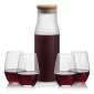 The Yarmouth 33oz Carafe features frosted glass and a cork lid to serve and store your favorite vintage wine. Matched with 2 or 4 of our contemporary Vale Stemless wine glasses for an elegant gift set that is sure to impress.