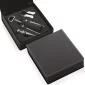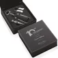 The Falkland Wine Accessory Set includes three essential tools for any wine enthusiast: a wine opener, wine stopper and foil cutter. Packaged in an elegant black leatherette box, making it an ideal gift for anyone looking to enhance their wine-drinking ritual. Product Size: 6.625"W x 7.5" H x 2" D. 6.625" W x 7.5" H x 2.0" D