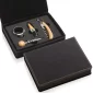The 4pc Norene Wine Accessory Set is a must-have collection for wine enthusiasts who appreciate the perfect blend of nature and sophistication. This thoughtfully curated set includes a wine opener, wine pourer, wine stopper, and a bottle ring drip stopper, all presented in an elegant leatherette case for a touch of luxury. Cheers to a new level of wine appreciation!Product Size: 7" W x 5.5" H x 1.375" D. 7.0" W x 5.5" H x 1.375" D