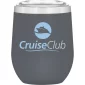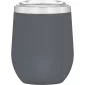 12 oz double wall 18/8 stainless steel thermal tumbler with copper vacuum insulation, stainless steel rim, push-on clear lid, and powder coated finish. Individual gift box. Hand wash recommended. Do not microwave. Complies with FDA, Prop 65. 4.625" H x 3.5" W