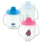 7 Oz., Spill Resistant, Liquid Container, Double Handle, 2 Sided Handle, Cylindrical, Drinkware, Screw On Lid, Base, Cap. Complies with ASTM, CCPSA, CPSIA, FDA, Prop 65. 5" L x 4 3/4" W