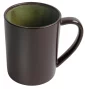 Au Chocolat, 17oz ceramic large mug with traditional handle shape. Chocolate brown satin finish exterior which hides fingerprints and organic look green reactive glaze interior. interior glaze is custom for each piece, no two exactly the same. Reactive glaze creates a distinct look, each piece is unique. Recommend hand wash only. 4.5" H x 3.58" Diameter