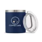Double-wall insulated Stainless Steel mug with clear Polypropylene Plastic sip-it lid. Features welded handle. Designed for use with both hot and cold beverages. It's hand-wash only. Do not microwave or place in freezer. Logo restrictions may apply to this product. Complies with Prop 65. 4.75" W x 4" H x 3.5" Diameter