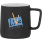 12 oz stoneware: matte color out / gloss white in. Hand wash recommended. Microwave safe with non-metallic imprint. Complies with FDA, Prop 65. 3.875" H x 5" W