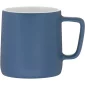 12 oz stoneware: matte color out / gloss white in. Hand wash recommended. Microwave safe with non-metallic imprint. Complies with FDA, Prop 65. 3.875" H x 5" W