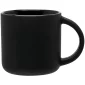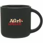 14 oz stoneware: matte black out / glossy color in. Hand wash recommended. Microwave safe with non-metallic imprint. Complies with FDA, Prop 65. 3.625" H x 5.125" W