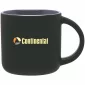 14 oz stoneware: matte black out / glossy color in. Hand wash recommended. Microwave safe with non-metallic imprint. Complies with FDA, Prop 65. 3.625" H x 5.125" W