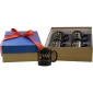 Our 4 mug gift box comes with 11 oz. mugs, rested in protective foam to guarantee no breakage with a professional look. Hand wash for mugs is recommended. Mug colors available in: Black, Midnight Blue, Navy, Ocean Blue and Red. 12.25" L x 10.25" W x 4.75" H