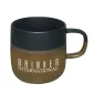 13 oz. Color Porcelain Mug. Two Color Matte Finish Glaze on Exterior. Finished with a band of Exposed Clay. Available in Coffee & Caramel. 1 Color Imprint. 4 1/2" W x 3 1/16" H