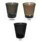2oz. Stoneware shot glass with reactive glaze and exterior and tonal contract glaze at base. 2 1/4" W x 2 1/4" H