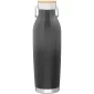 20.9 oz double wall 18/8 stainless steel thermal bottle with copper vacuum insulation, threaded stainless steel insulated lid, bamboo top, swing handle, glossy ombré finish, stainless steel base · patent pending - gift box included. Hand wash recommended. Do not microwave. Complies with FDA, Prop 65. 10.25" H x 3.125" W