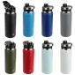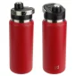 NAYAD® Traveler 26 oz Stainless Double-wall Bottle with Twist-Top Spout is made of 18/304 rust-free stainless steel construction, double-wall insulated. Copper-lined to keep beverage hot for up to 10 hours and cold for up to 20 hours. Has a wide-mouth lide that is 100% BPA-free Triatan™ plastic with twist-top spout and a zinc alloy metal handle that is strong and durable making it easy to carry. Hand wash only. FDA certified. Complies with FDA, Prop 65. 10.625" H x 3.375" Diameter