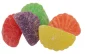 60g snack package of Gummy Fruit Slices with a 2.5" diameter full color label on 1 side. Mixed colors only included. Complies with Prop 65. 4" W x 4" H