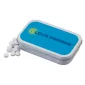 Sugar & Gluten free breath mints in 3 flavors: Peppermint, Wintergreen, and Cinnamon. Tin holds 2.53 Oz. of mints & comes w/a standard white label unless a metallic label is requested. Epoxy dome is available. Complies with FDA, Prop 65. 2 3/8" H x 3 3/4" W x 3/4" D