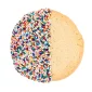Delight everyone with exquisite flavors of the season using these delectable Seasonal themed butter cookies! Perfectly crafted round butter cookies. Half dipped in luscious milk chocolate. Adorned with festive nonpareil sprinkles in vibrant Seasonal hues. Individually wrapped. Cookies have a six month shelf life. 5" W x 3 1/4" H