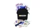 This kit includes 3 antiseptic wipes, 1 hand sanitizing wipe, 14 alcohol prep pads, 2 insect sting wipes, 2 lens cleaning wipes, 5 plastic adhesive bandages, 1 knuckle bandage, 1 fingertip bandage, 2 adhesive patch bandages, 2 gauze pads (2"x2"), 1 roll of adhesive tape, tweezers, scissors, and 3 golf tees. It all comes in a nylon bag with a Velcro® closure. 3.25" W x 3.75" H x 2" D