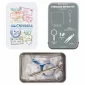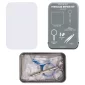 See clearly and confidently with our On the Go Eyeglass Repair Kit, a handy solution for unexpected eyewear adjustments. Each set includes a magnifying glass, nose pads, tweezers, 3-in-1 screwdriver, and a cleaning cloth. The convenient tin carrying case features a secure slide lid and includes a breakdown of the enclosed items on the back, keeping everything in its place. 2 3/8" L x 3 5/8" W x 13/16" H
