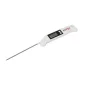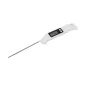 Instant-read digital thermometer. On/off button & Celsius/Fahrenheit button with easy-to-read LCD display. Foldable probe for convenient storage & portability and auto shut-off to save battery. Pre-printed temperature cooking guide on the back. Displays in Celsius or Fahrenheit and utilizes a CR2032 battery (inserted). Instructions included, individually boxed and FDA compliant. Complies with Prop 65. 6.75" W x 1.5" H x 0.5" D