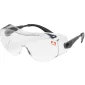 CSA Z94.3 and ANSI-Z87.1 approved. Adjustable Over-The-Glass style offers a perfect fit over any kind of personal eyewear and helps keep prescription eyewear users in compliance. Can be used by themselves as a regular safety glass. Rimless frame design ensures an unobstructed view, adjustable length temples are rubber co-molded, offering a secure custom fit. Ratchet temples for better angle adjustment, molded nose bridge, U-Fit® spatula temples, Provides 99.9% UVA and UVB protection. Complies with ANSI, CSA. 0.625" D x 6.25" W x 2.25" H