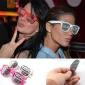 It is made of PC, and this eyewear is suitable for both men and women. your logo can print on the lens and frame, that is very fantastic when you wear it in party or some events.