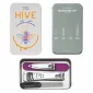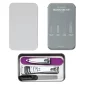 Keep a set of manicure essentials on hand for quick touch-ups and maintenance while at home, work, or on the go. Each set includes a small and large nail clipper, emery board, and metal nail file. The convenient tin carrying case has a secure slide lid and includes a breakdown of the enclosed items on the back. Complies with CCPSA, Prop 65. 2 3/8" L x 3 15/16" W x 3/4" H