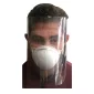 This adjustable, adult sized, disposable face shield provides added protection to wider facial area than masked. Wearing a mask underneath is recommended. Ships flat and unassembled, easy assembly instructions included. Not intended for medical use; not recognized by the CDC or FDA as safe or effective against COVID-19 or any virus; no guarantee item will protect user from any illness. Patent Pending. Complies with Prop 65. 28.6" W x 12.5" H